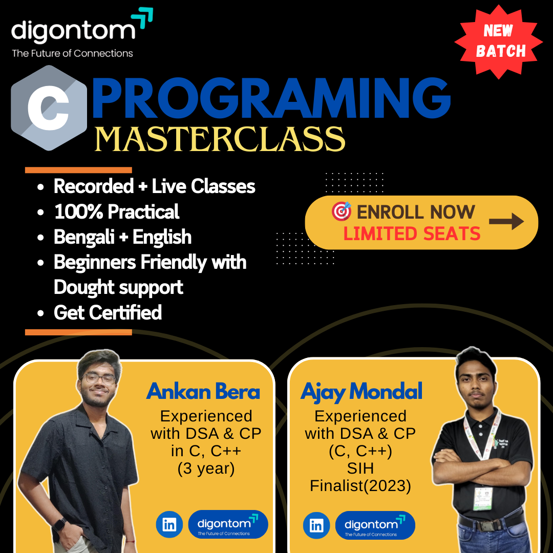 The C Programming Masterclass is a comprehensive, semester-wise course designed to build a strong foundation in C programming. This masterclass takes a step-by-step approach, making it ideal for beginners while also offering valuable insights for intermediate learners.
